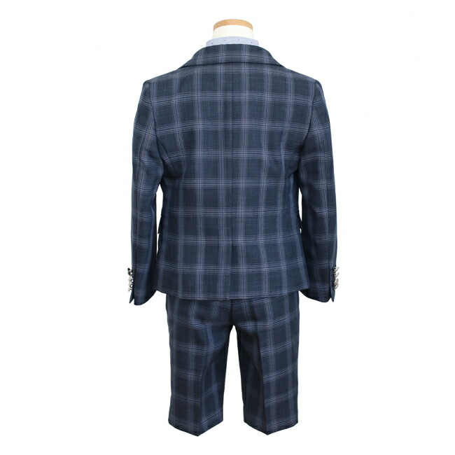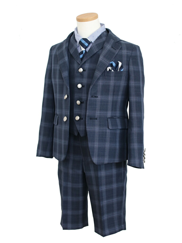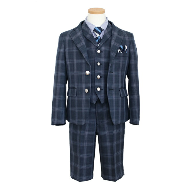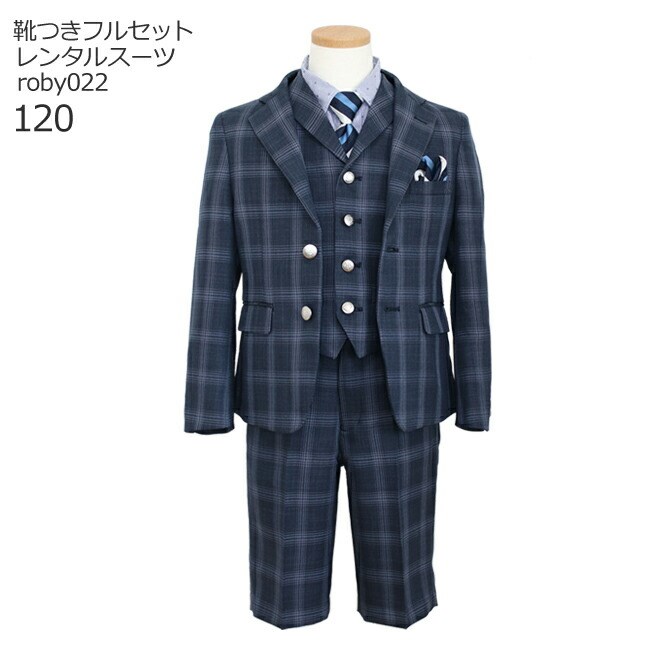 男の子 フォーマル 子供服 子どもスーツ レンタル 紺チェック roby022 男児スーツセットベスト付