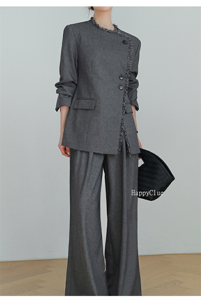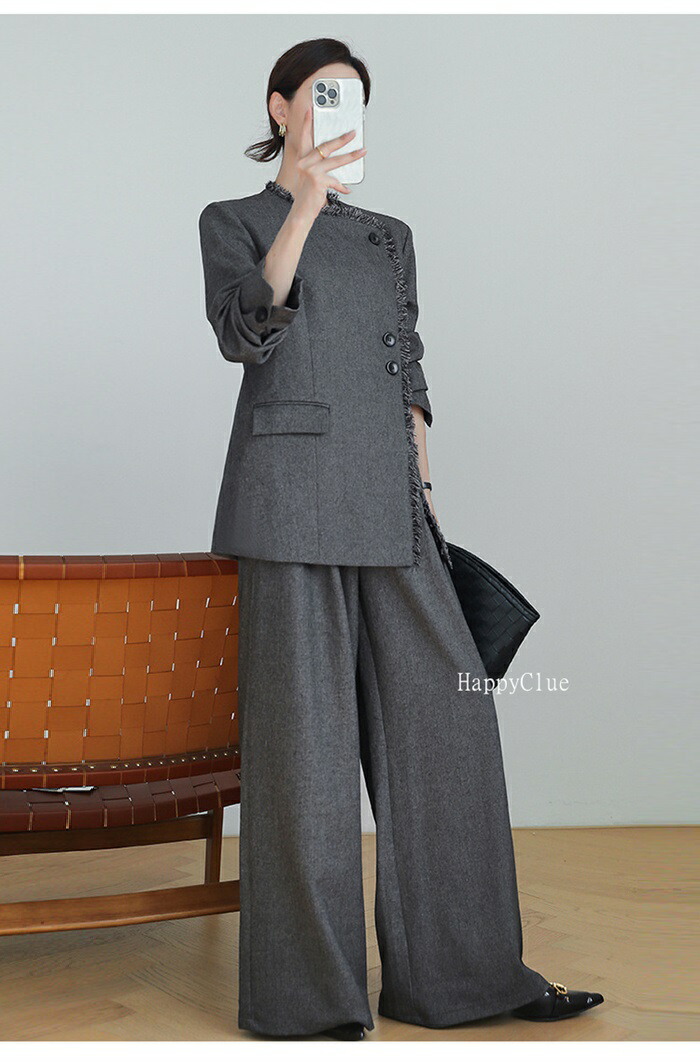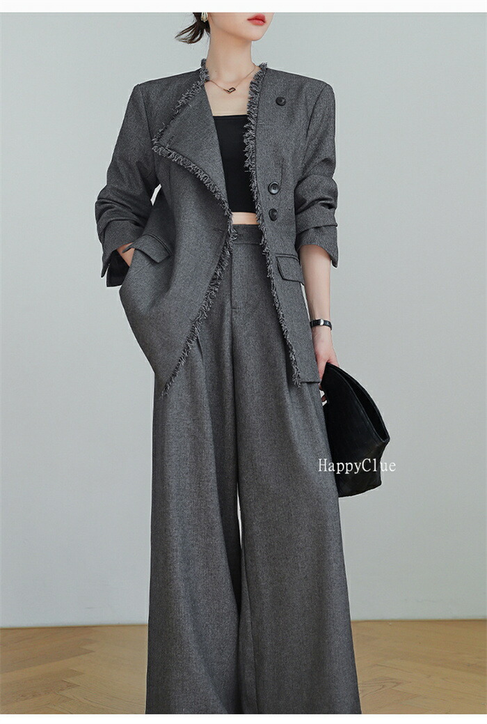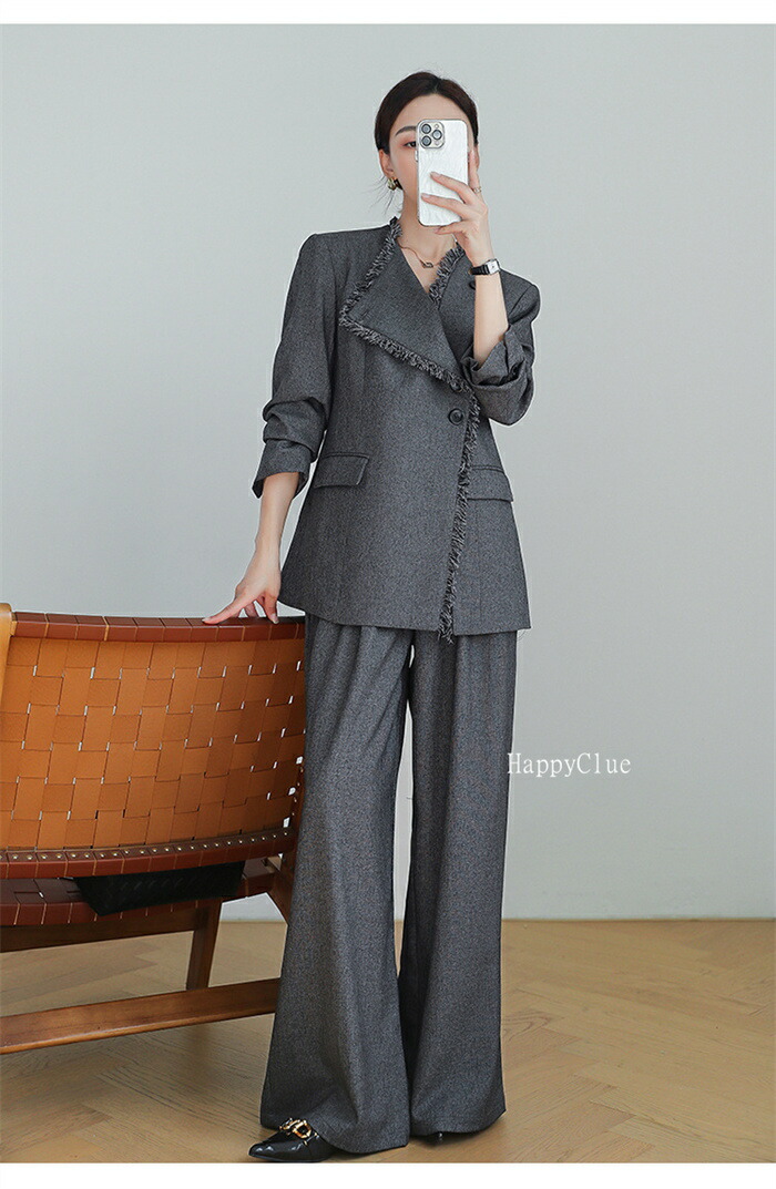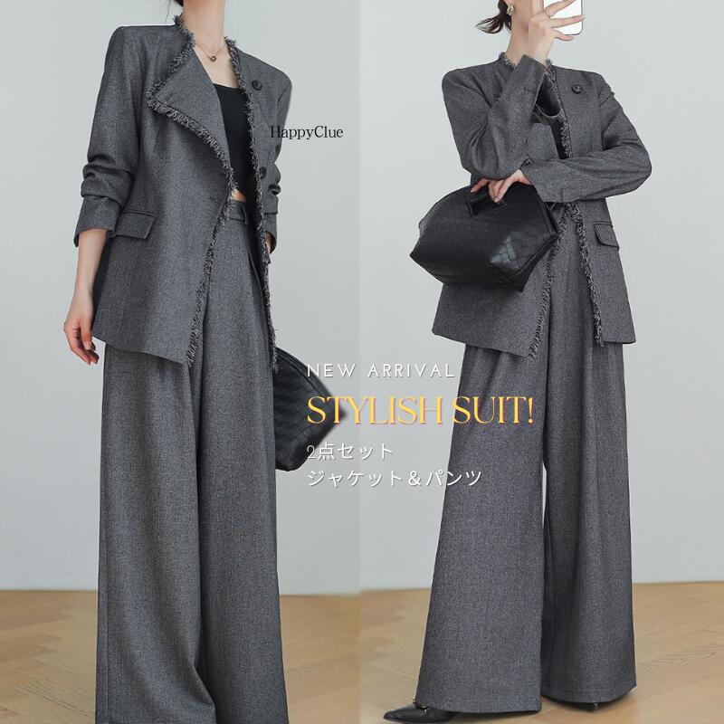 セットアップ おしゃれ 春秋 レディース パンツスーツ 上下セット カジュアル スーツ 秋冬 スーツセット 長袖ジャケット ワイドパンツ 2点セット ゆったり フォーマル 通勤 オフィス 体型カバー