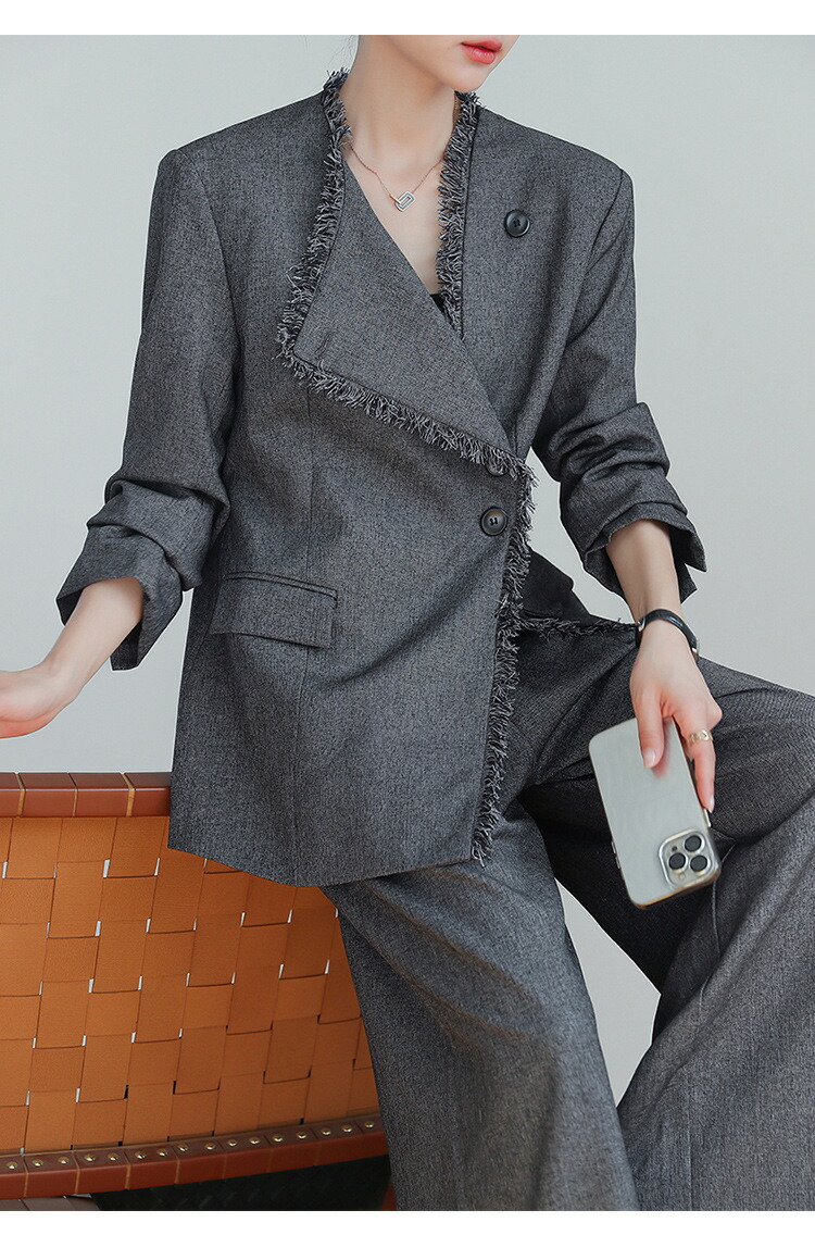 セットアップ おしゃれ 春秋 レディー レディースファッション 通販 L XL 2XL 3XL 4XL 5XL グレー/ジャケット+パンツ ブラック/ジャケット+パンツ