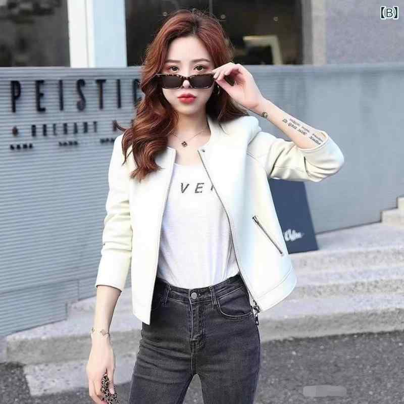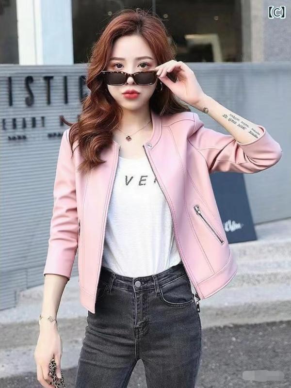レザージャケット レディース 春秋 ラ レディースファッション 豊富 A:黒 B:白 C:ピンク D:赤 S M L XL