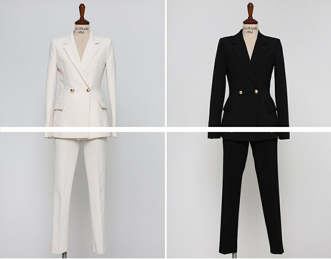 セットアップ パンツスーツ おしゃれ レディースファッション 特集 S M L XL 2XL 白/ジャケット+パンツ 黒/ジャケット+パンツ