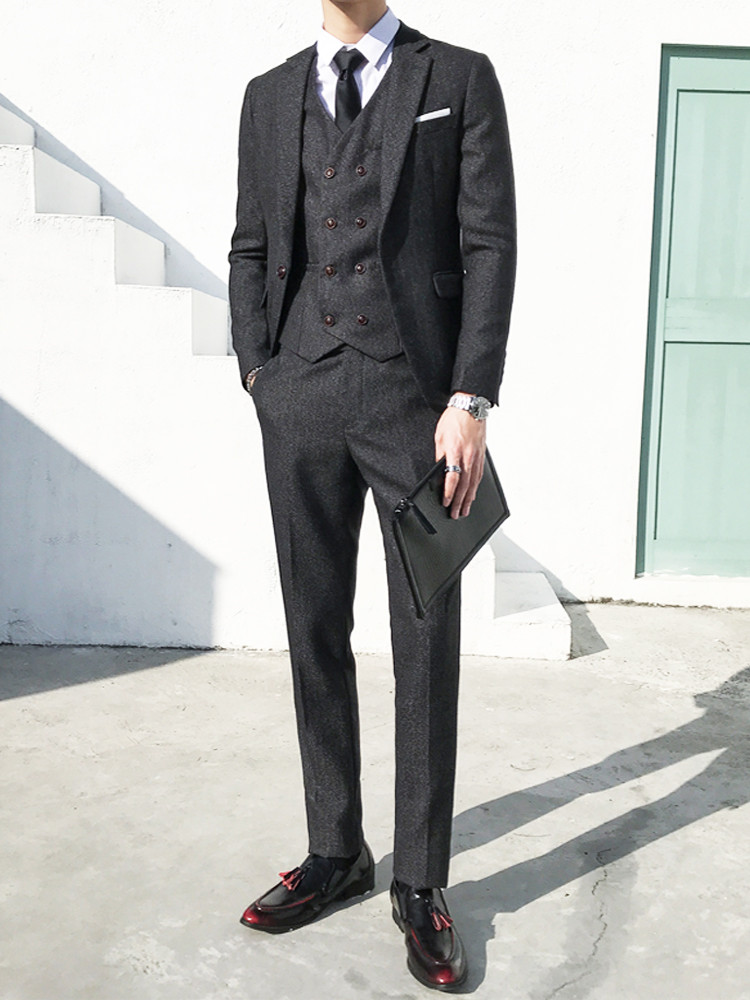 スリーピース メンズスーツ 3ピースス メンズファッション 早い者勝ち M L XL 2XL 3XL 4XL カーキ/3点セット グレー/3点セット ブラック/3点セット