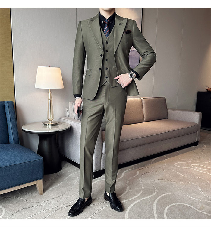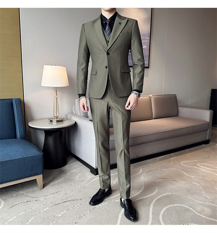 春新作 スリーピース スーツ メンズ スーツ セットアップ 礼服 早い者勝ち M L XL 2XL 3XL 4XL 緑/3点セット 青/3点セット カーキ/3点セット