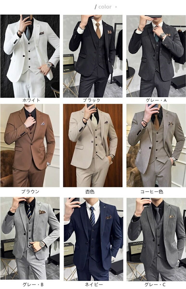 スリーピース 大人 タキシード 紳士服 メンズファッション 早い者勝ち S M L XL 2XL 3XL 4XL 5XL 6XL 7XL ホワイト ブラック グレー・A ブラウン 杏色 コーヒー色 グレー・B ネイビー グレー・C