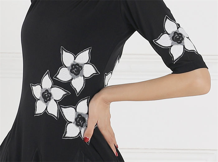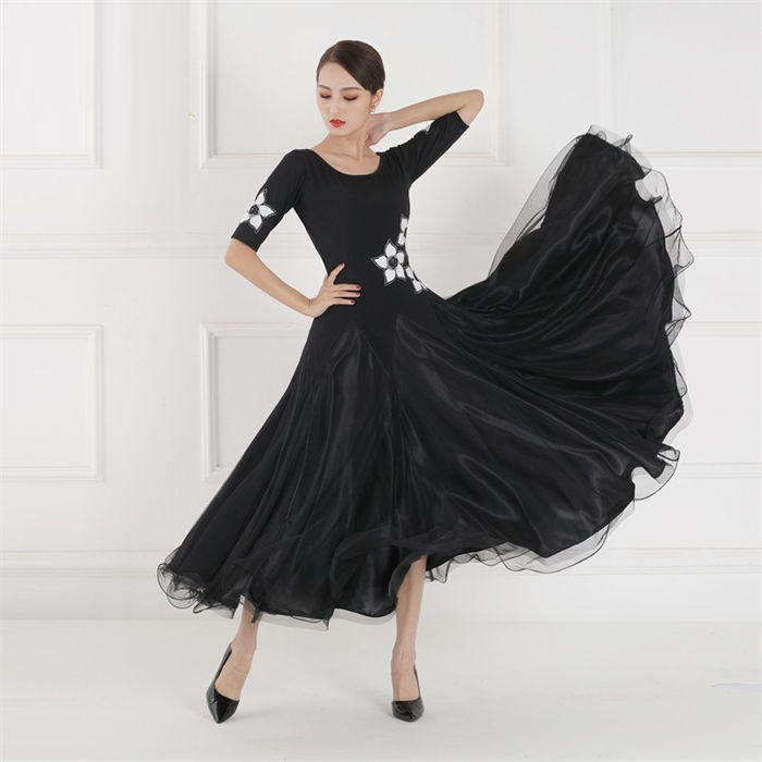 社交ダンス 衣装 ワンピース 大きい裾 上品 お洒落 ダンス専門服 タンゴ モダンダンス 舞台 演出 イベント衣装 ステージ衣装 ラテンダンス ダンスウエア ダンス競技着 ワルツ チャチャ 踊 練習着