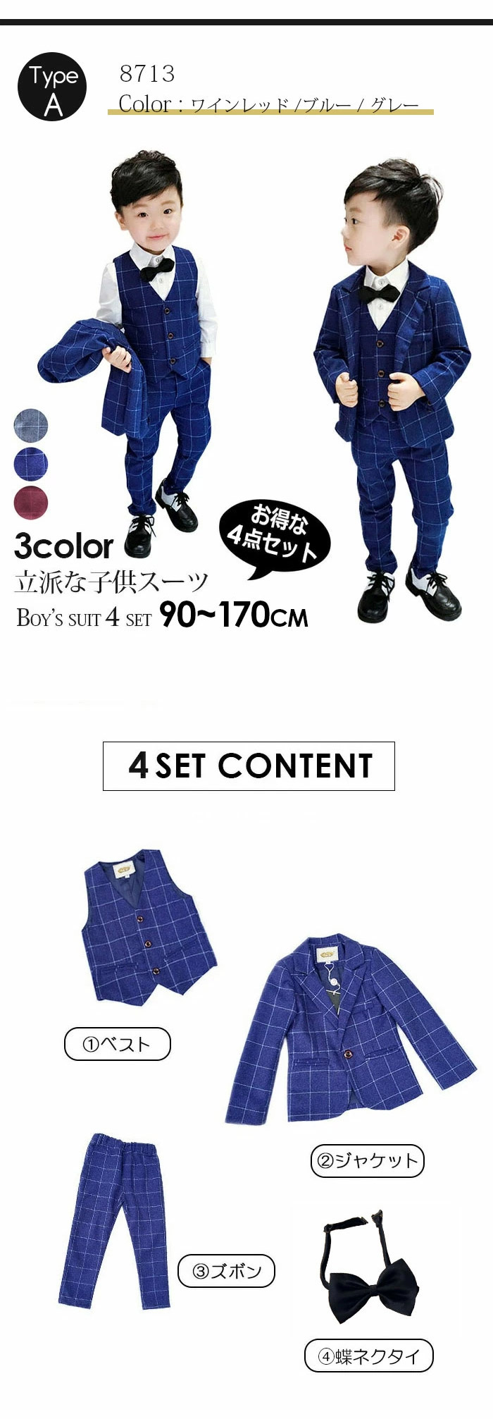 男の子 スーツ フォーマル 8タイプ キッズ スーツ カジュアルセットアップ スーツ 豊富 タイプAグレー タイプAブルー タイプBパープル タイプBネイビー タイプDチェック タイプEネイビー タイプFネイビー タイプFブラック タイプGブラック タイプGグレー タイプHネイビーチェック タイプHブラックチェック タイプHグレーチェック 90cm 100cm 110cm 120cm 130cm 140cm 150cm 160cm 170cm