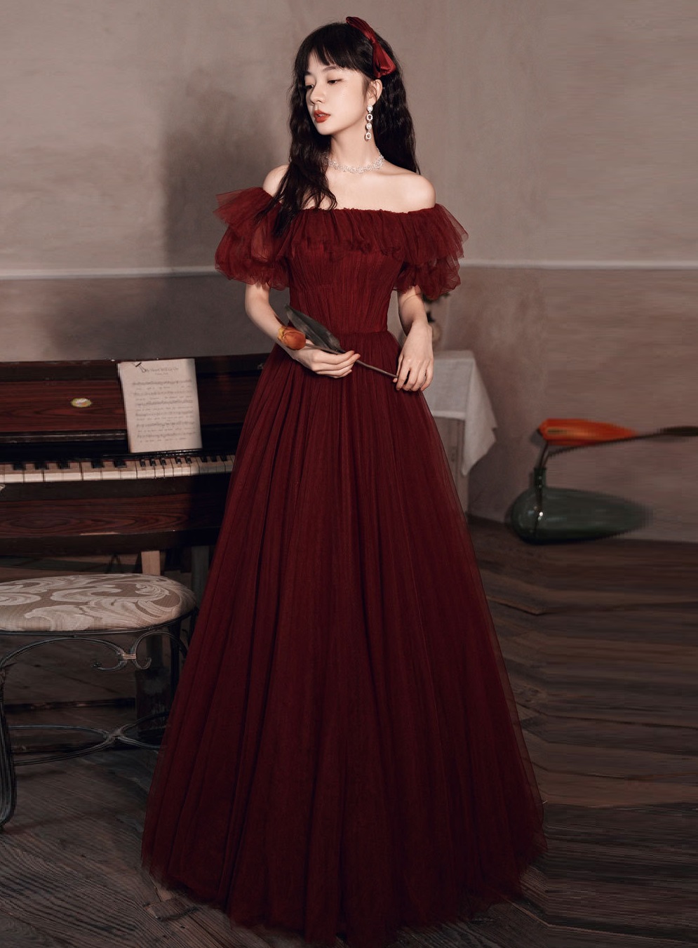 カラードレス 赤 ウエディングドレス プリンセス 二次会 パーティードレス レディース 結婚式 ワンピース イブイングドレス 衣装 演奏会 発表会 大きいサイズ オフショルダー おしゃれ ロングドレス
