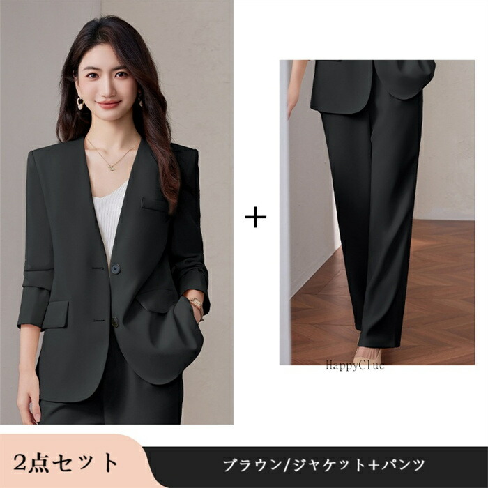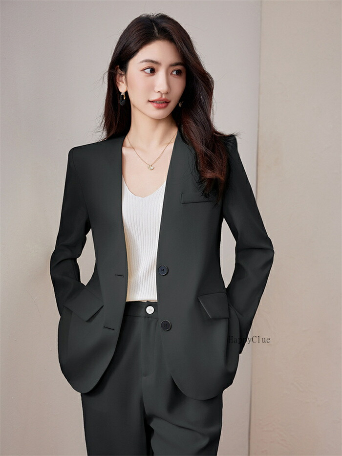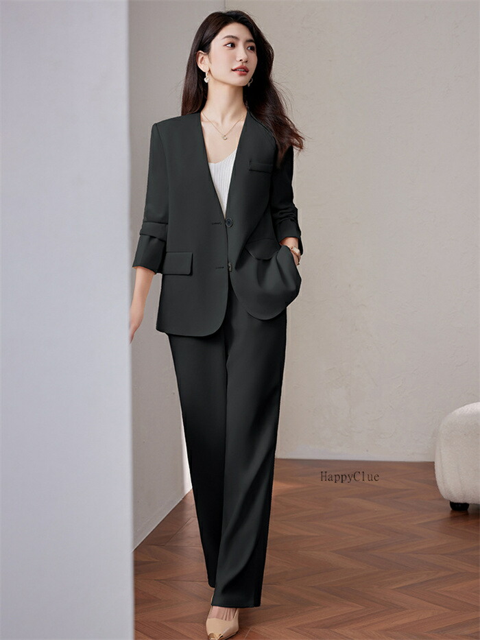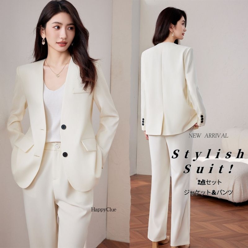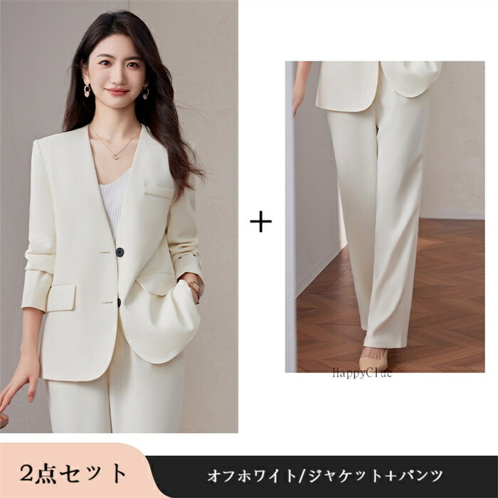 セットアップ おしゃれ 春 レディース スーツ セットアップ パンツスーツ 人気 S M L XL 2XL 3XL ブラック オフホワイト