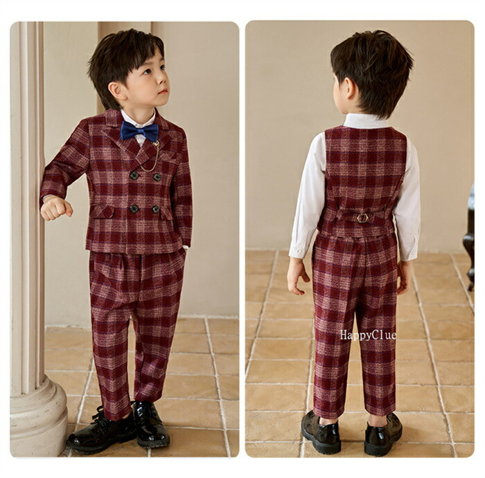 男の子 子供スーツ セットアップ キッ キッズ ベビー マタニティ 通販 110 120 130 140 150 ワインレッド/4点セット ワインレッド/5点セット ブルー/4点セット ブルー/5点セット