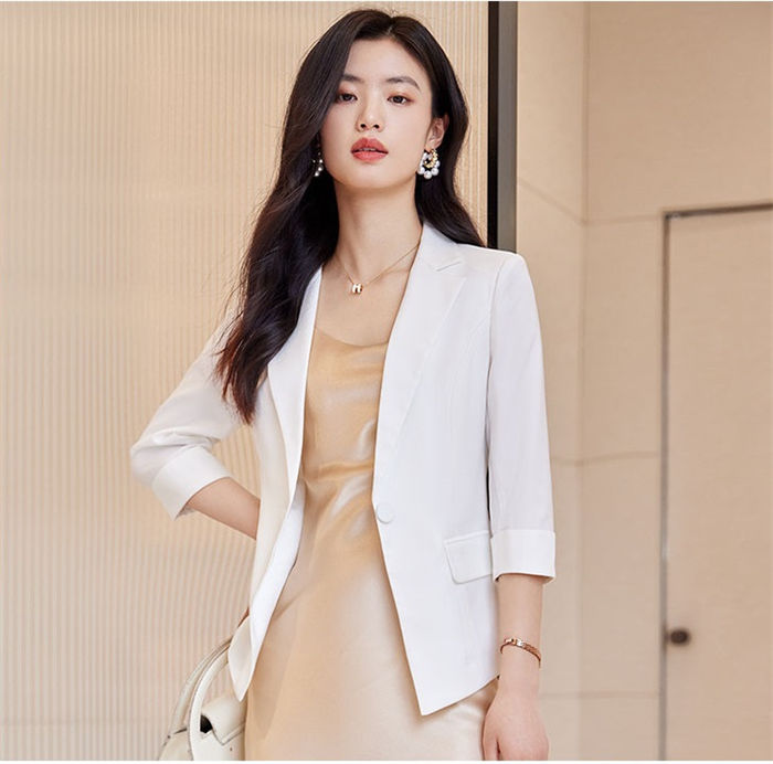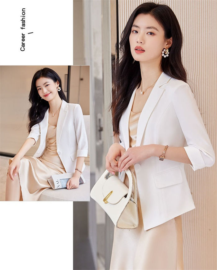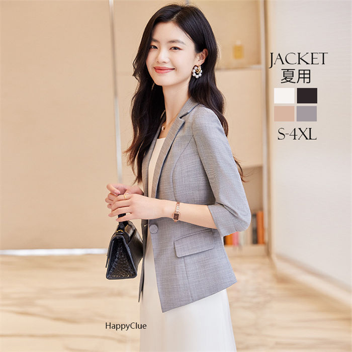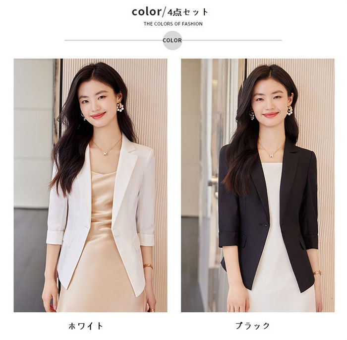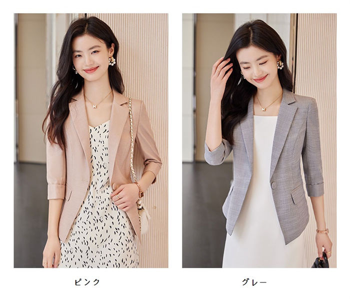 ジャケット 5分袖 テーラード 綺麗め 春夏 スーツジャケット ショート丈 ミドル丈 エレガント 優雅 事務服 レディース 通勤アウター ビジネス カジュアル フォーマル OLオフィス 女性 スーツ
