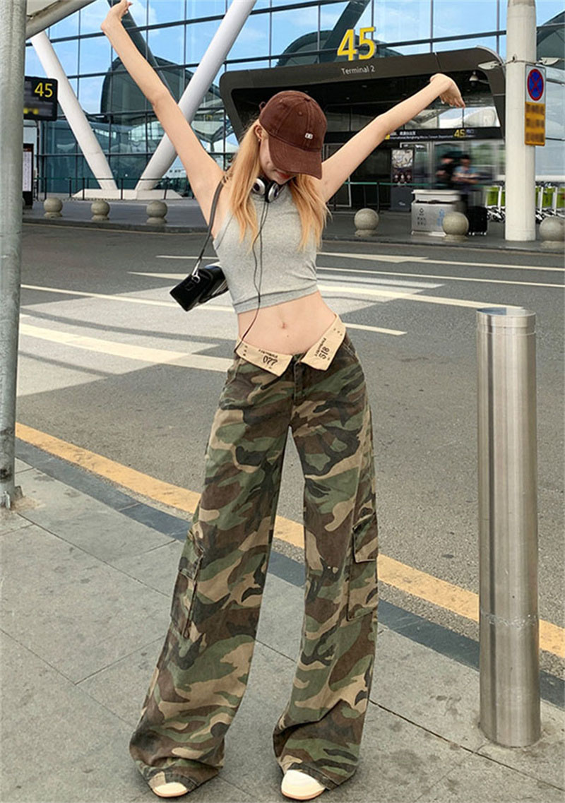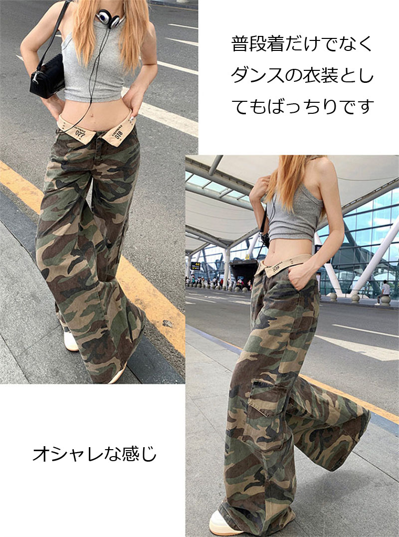 カーゴパンツ ワイドパンツ レディース ダンス 大きいサイズ ロングパンツ ボトムス 迷彩柄 コットン ミリタリー パンツ ゆったり 迷彩カーゴパンツ HIPHOP 衣装 ストリー カジュアル
