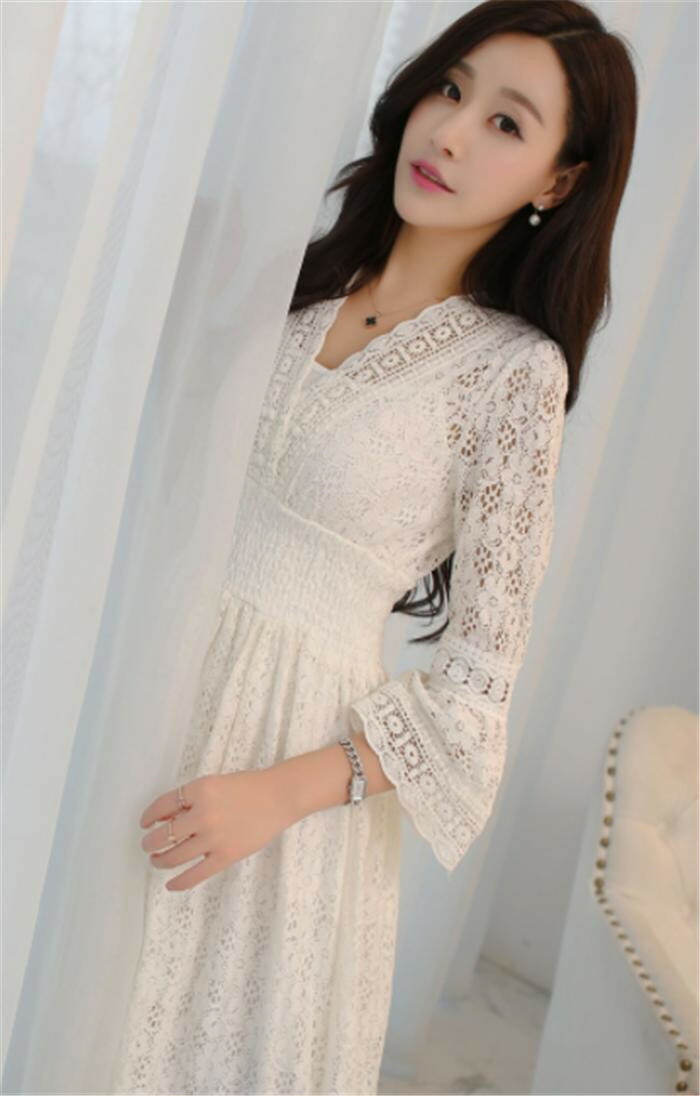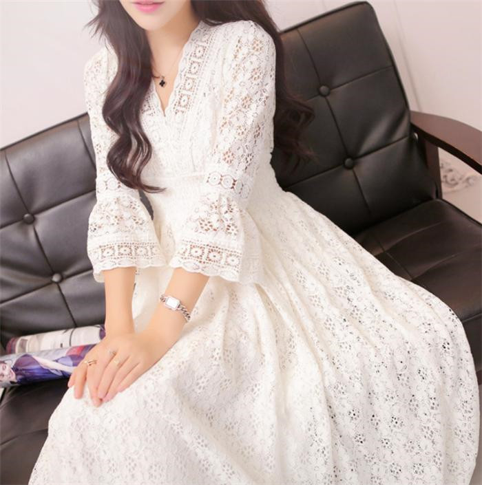 結婚式 フォーマル パーティードレス大きいサイズ レディースドレス総レースワンピース結婚式 ドレス 透け感 白ワンピース 膝丈 ミモレ丈 ミディアム丈 ワンピース 長袖 無地 アイ レース
