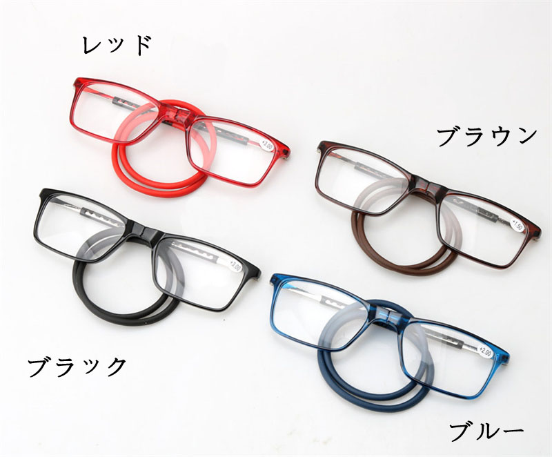 紛失防止老眼鏡 マグネット おしゃれ 眼鏡 サングラス 老眼鏡 通販 ブラック ブルー レッド ブラウン +1.0 +1.5 +2.0 +2.5 +3.0 +3.5 +4.0