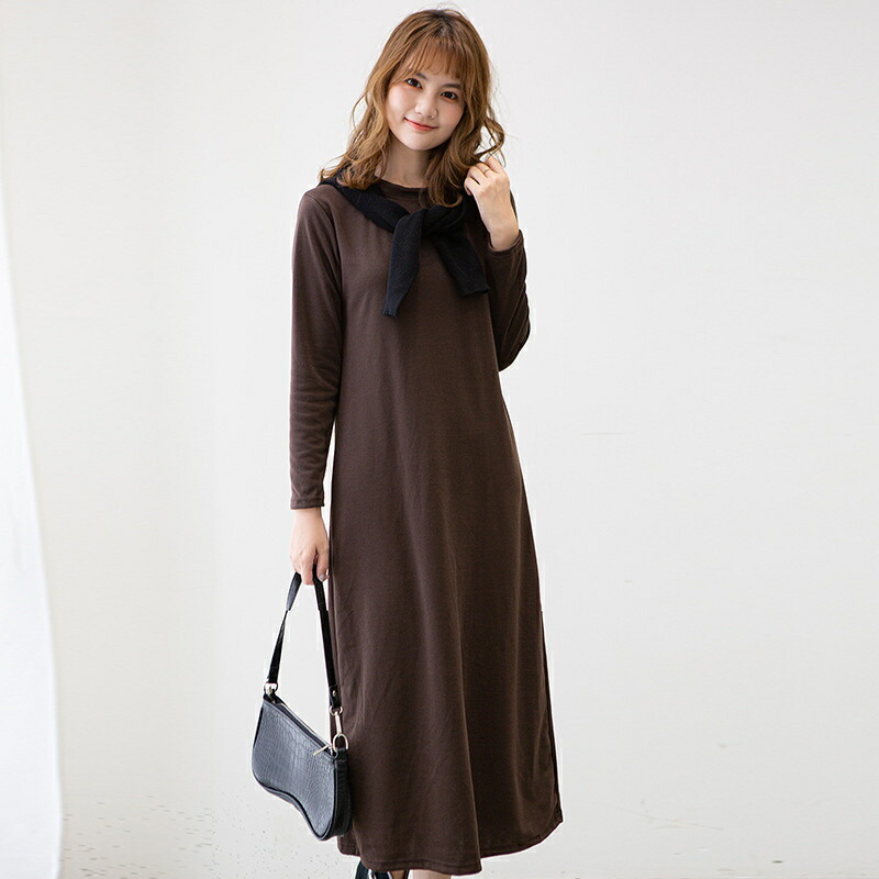 ワンピース ワンピ レディース 長袖 レディースファッション 超目玉商品 ブラック コーヒー ブラウン グリーン ネイビー M L XL