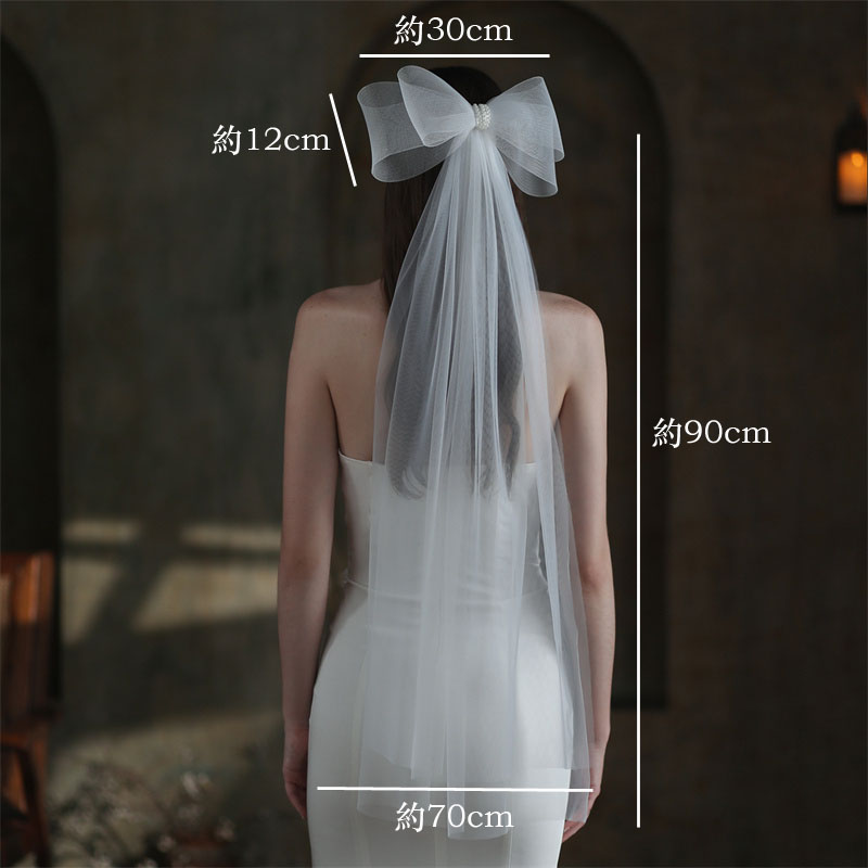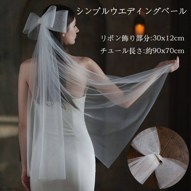 リボンウェディングベール リボンベール ショートベール 髪飾り ヘッドドレス ウェディングドレス ベール ショート ウェディング チュール ホワイト フェイスアップベール 挙式 花嫁 パーティ 結婚式
