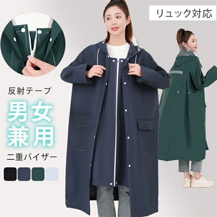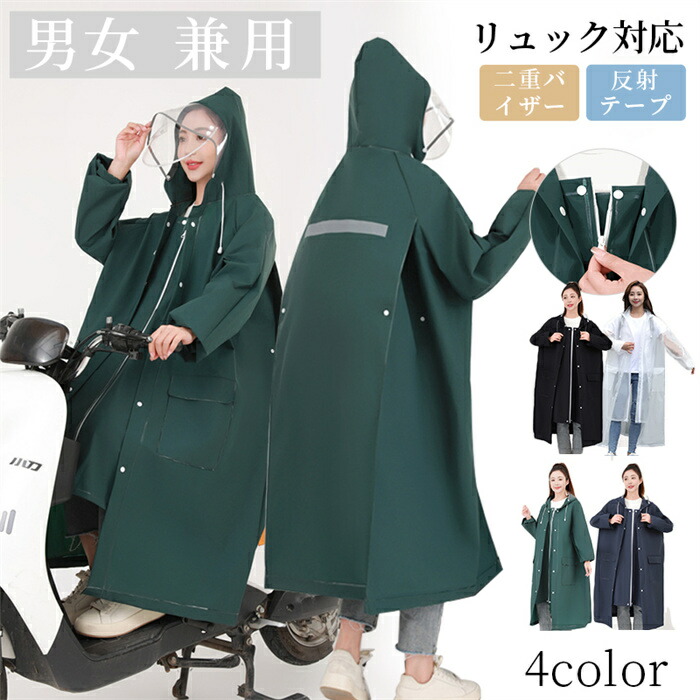 リュック対応 ストレッチ レインウェア 自転車 通学 通勤 リュック二重ツバ 反射テープクリア視野ランドセル対応 二重ツバ付き 男女兼用 通学通勤 超軽量 防汚 防風防水 速乾レインウェア 防塵防雪