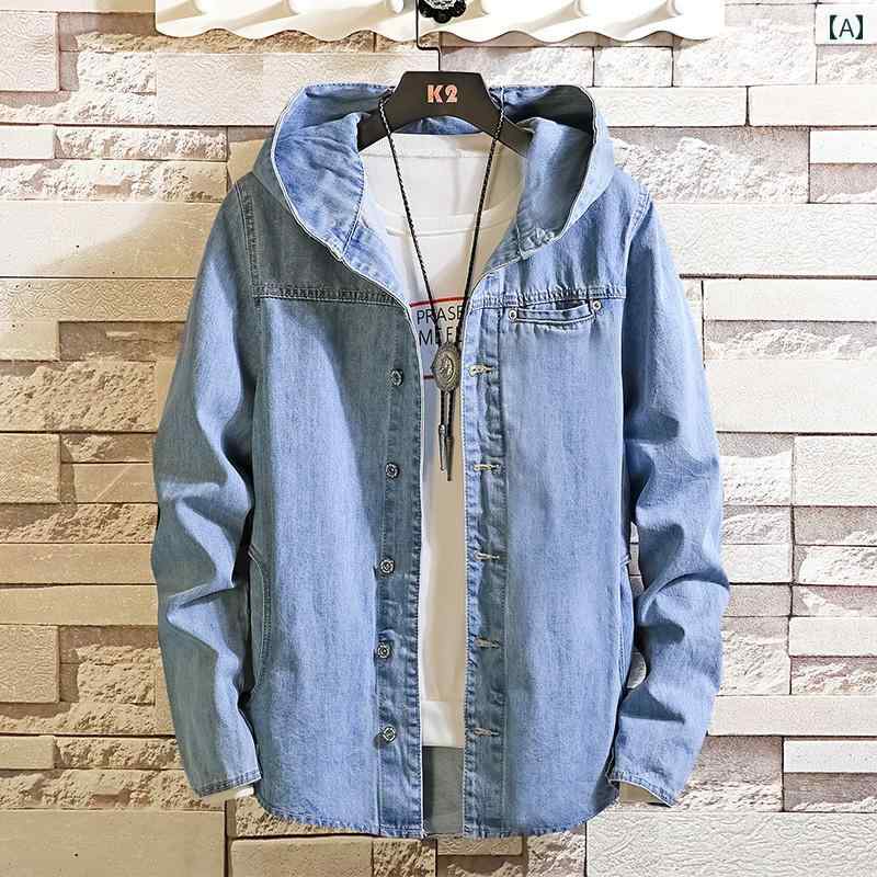メンズ ファッション 服 男性用 オシャレ シンプル 大人 かっこいい ストリート カジュアル シャツ ジャケット 薄手 デニムジャケット 韓国スタイル インナーウェア フード付き