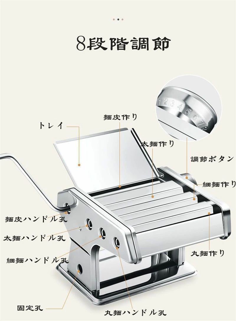 パスタマシン 手動 製麺機 3カッター 8段階調整 ステンレス 洗浄簡単 うどん スパゲティ そば ラーメンなど パスタメーカー 家庭用業務用 中華麺