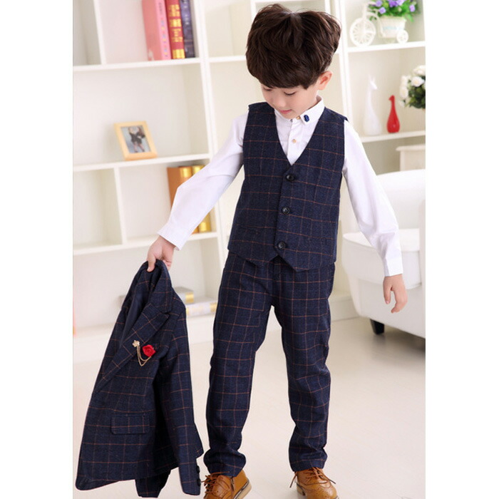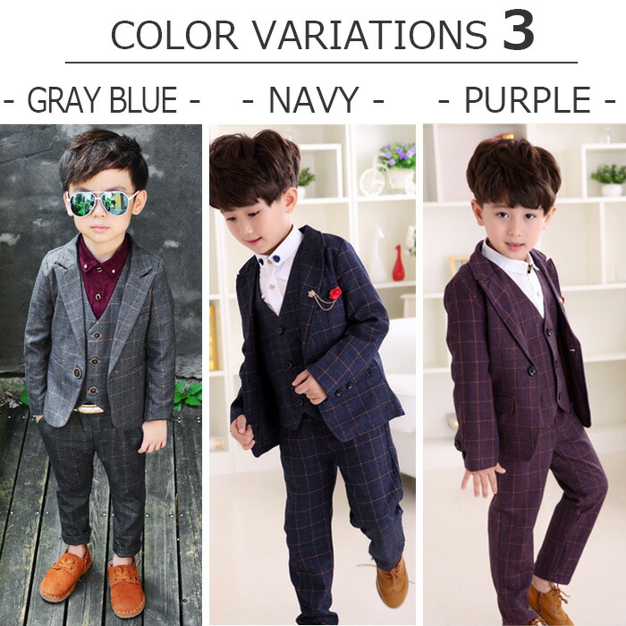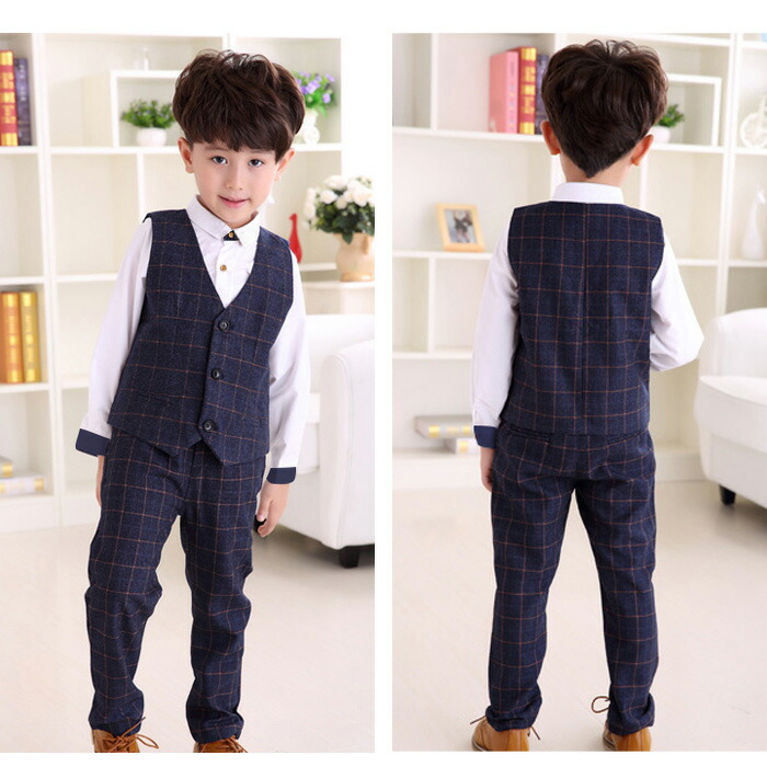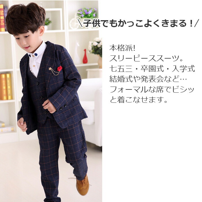 子供用本格派スリーピーススーツ。七五三や卒園式、卒業式、入学式、結婚式、パーティ、ピアノの発表会など様々なフォーマルシーンにおすすめの礼服です。