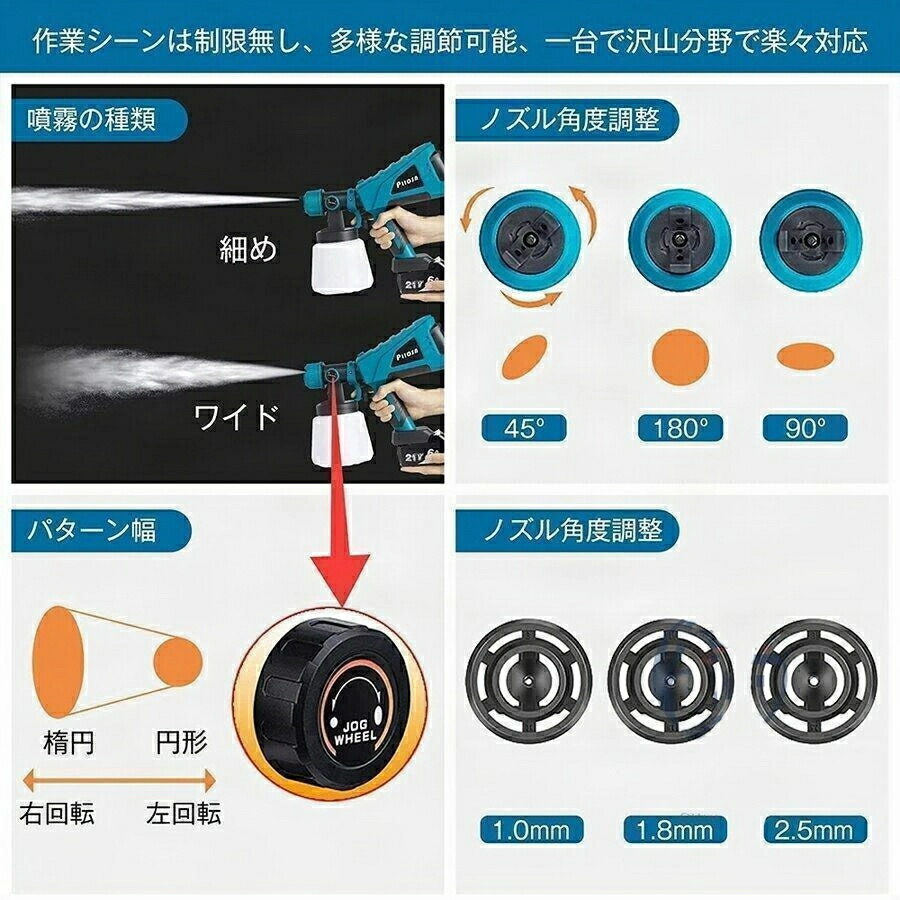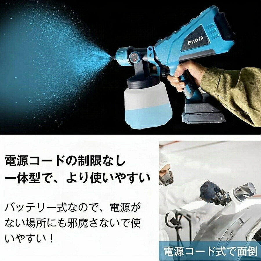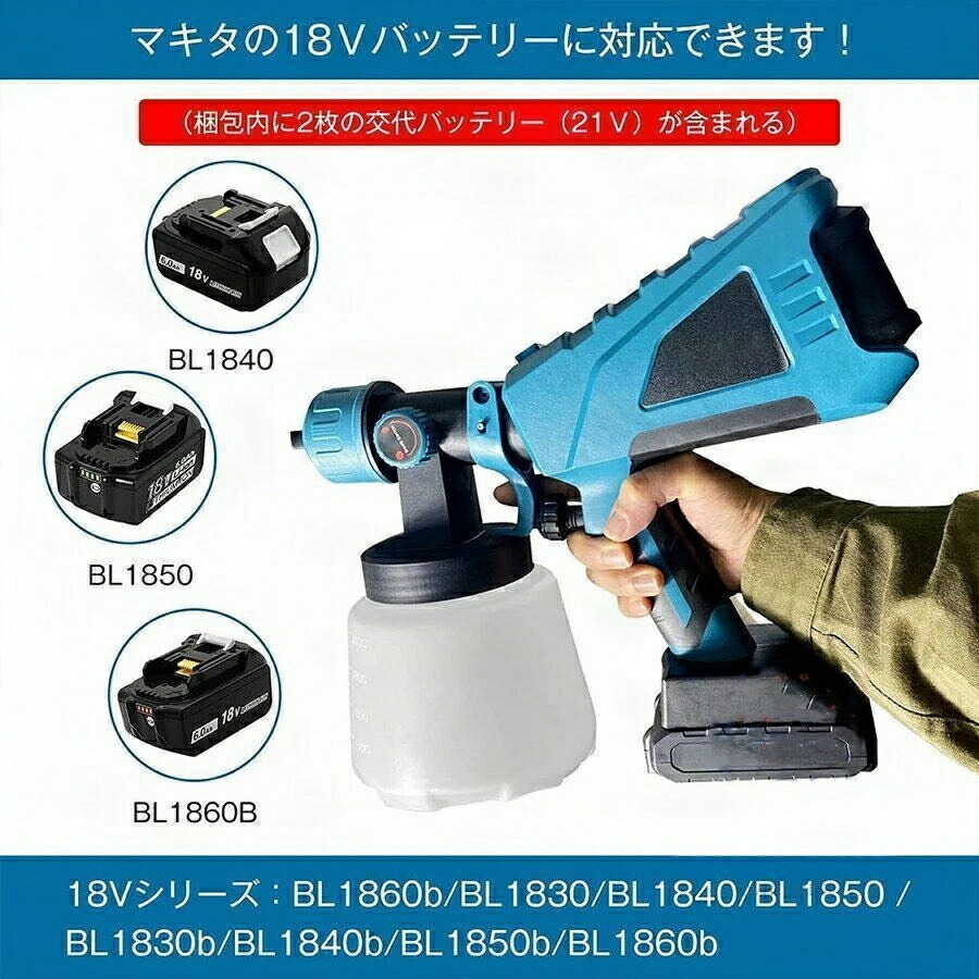 スプレーガン 電動 マキタ 充電器 急速充電器 18Vバッテリー互換対応 塗装ガン 塗料 パワースプレー 互換製品 別売 18ボルト 14.4ボルト ノズル4幅調整能