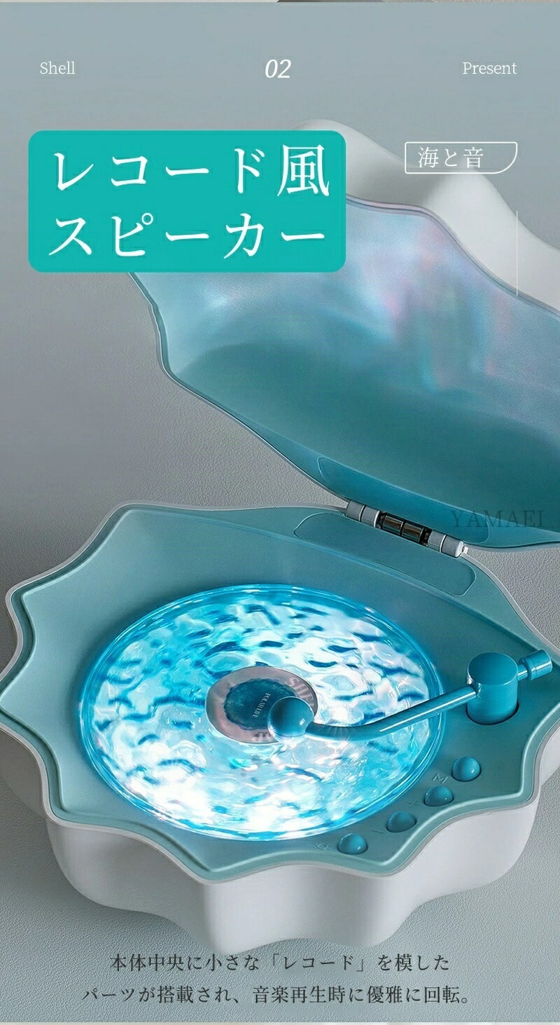 Bluetooth スピーカー 海 シェル 貝殻 海のレコードスピーカー レトロ レコード レコードプレーヤー風 雰囲気 可愛い 復刻スピーカー 360度サウンド 重低音 コンパクト 7色プロジェクターランプ オーロラ ライト 睡眠補助 ホワイトノイズ ギフト プレゼント
