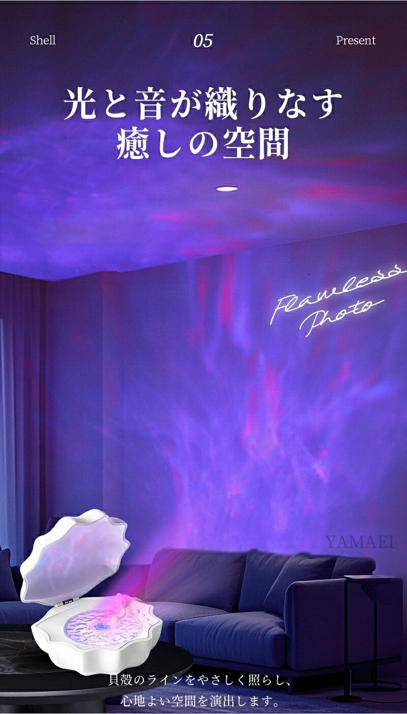 雰囲気ライト搭載: 優しい光が空間を包み込み、夜のリラックスタイムやムード作りにぴったり。
