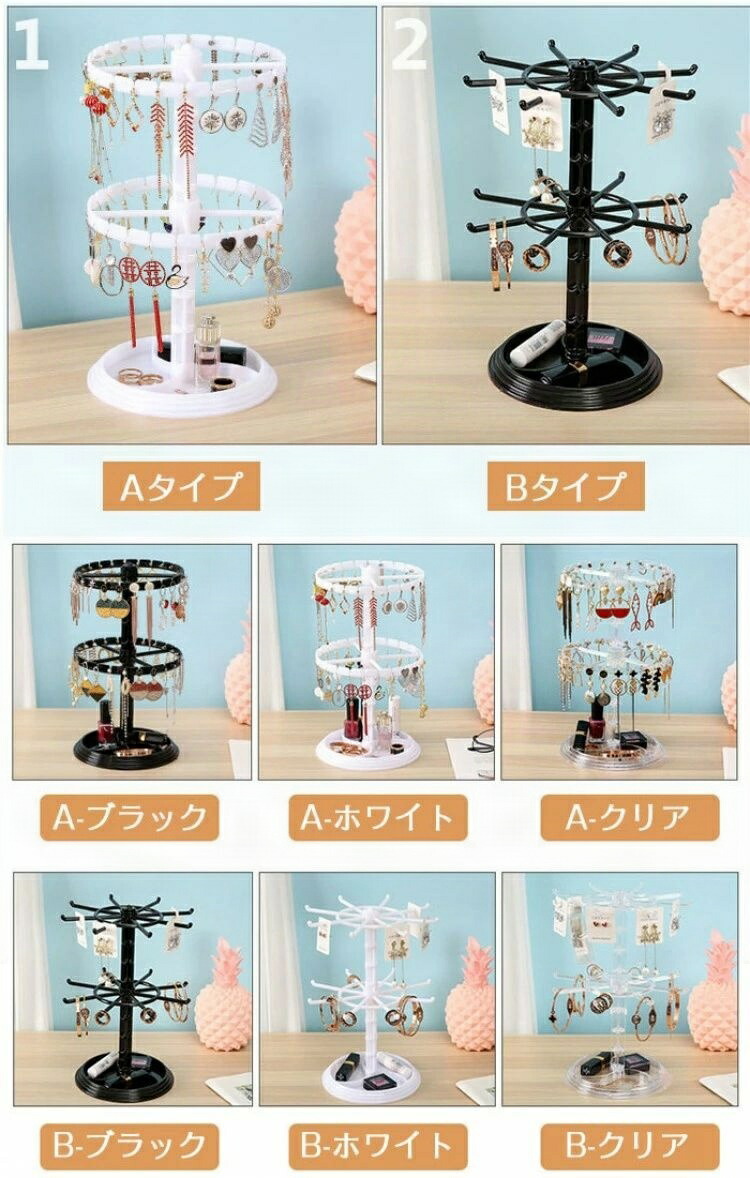 アクセサリースタンド 小物収納 回転し ジュエリー アクセサリー 続々入荷中 A-ブラック(2個) A-ホワイト(2個) A-クリア(2個) B-ブラック(2個) B-ホワイト(2個) B-クリア(2個) A-ブラック(1個)+B-ブラック(1個) A-ホワイト(1個)+B-ホワイト(1個) A-クリア(1個)+B-クリア(1個)