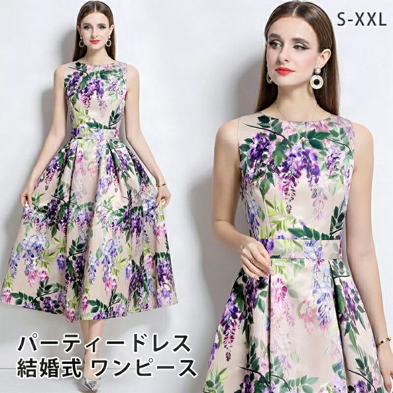 パーティードレス 花柄 ロング丈 ワン レディースファッション 続々登場 S M L XL XXL