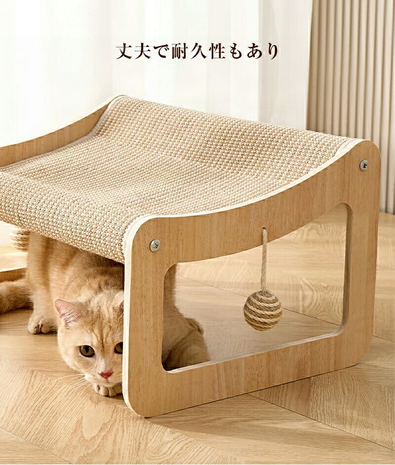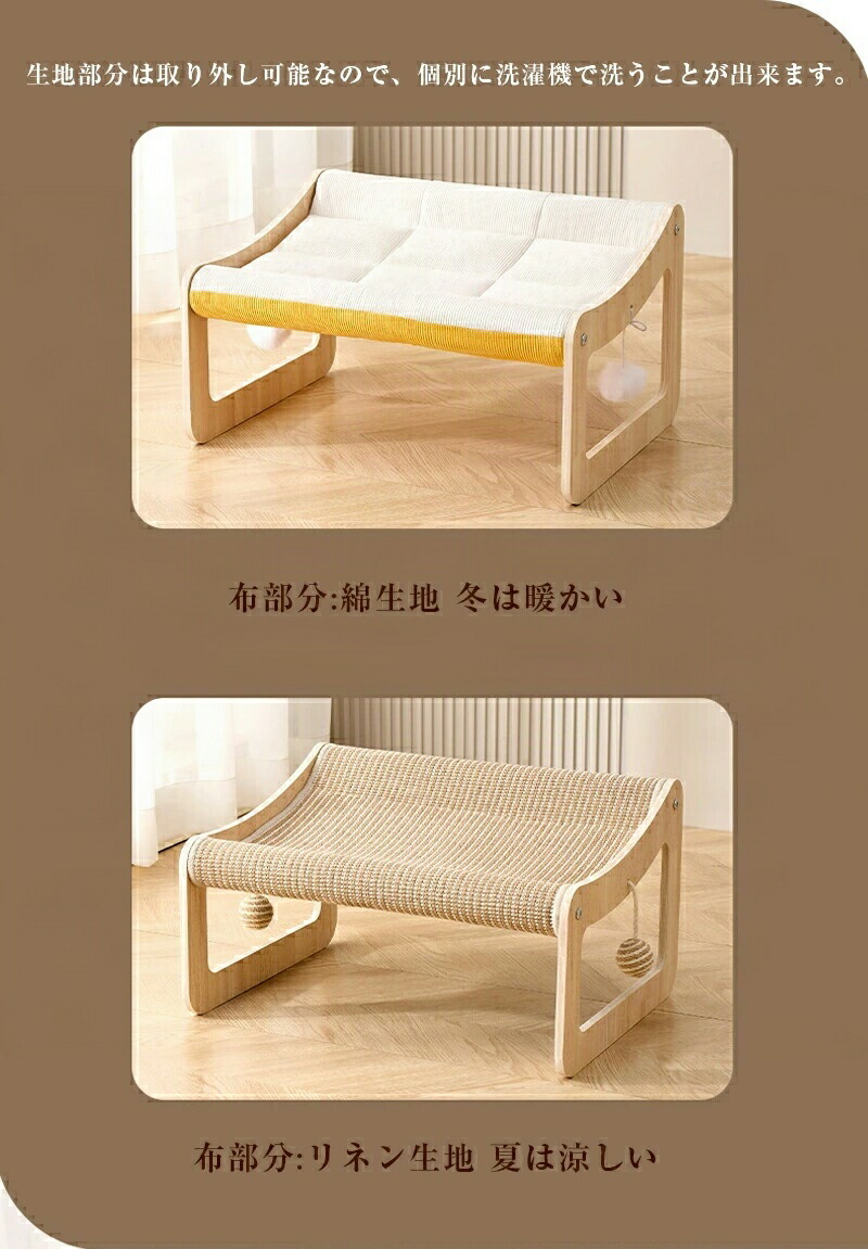 ハンモック ペット ベッド テーブル 爪とぎ ハンモックチェア ペット用品 収納ベッド 猫 犬 通気性 猫用 リネン 自立式 猫寝床 ネコベッド 夏 爪研ぎ 猫ソファー 木製 安定な構造 サイザル麻