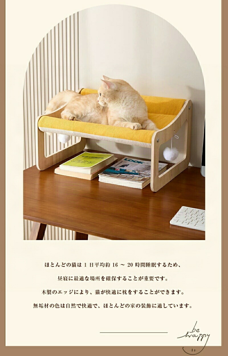 高品質なハンモックーこのハンモックは天然パイン材とその合板を使用してあります。なので、木特有の暖かみを持ちながら、丈夫で耐久性もあります。また、猫ちゃんたちにとってもベッドは居場所を作る大事な家具なので、長く使用できるよう設計されています。