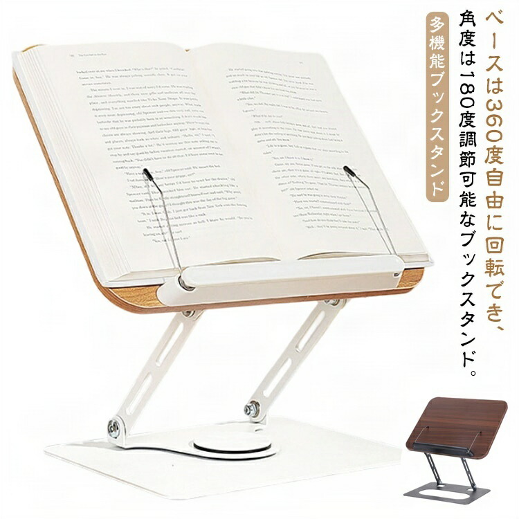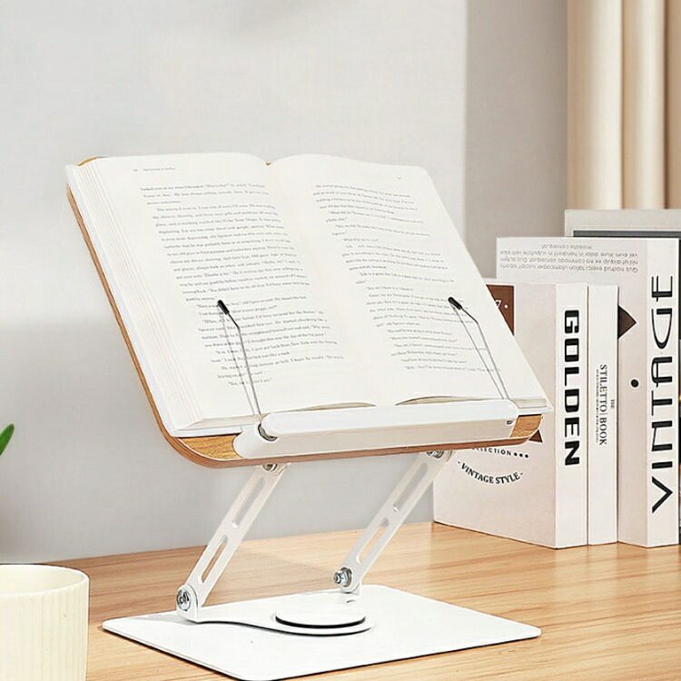 多機能ブックスタンド。ベースは360度自由に回転でき、角度は180度調節可能なブックスタンド。