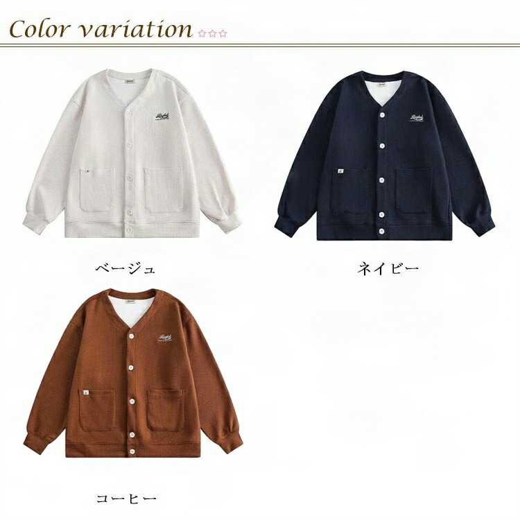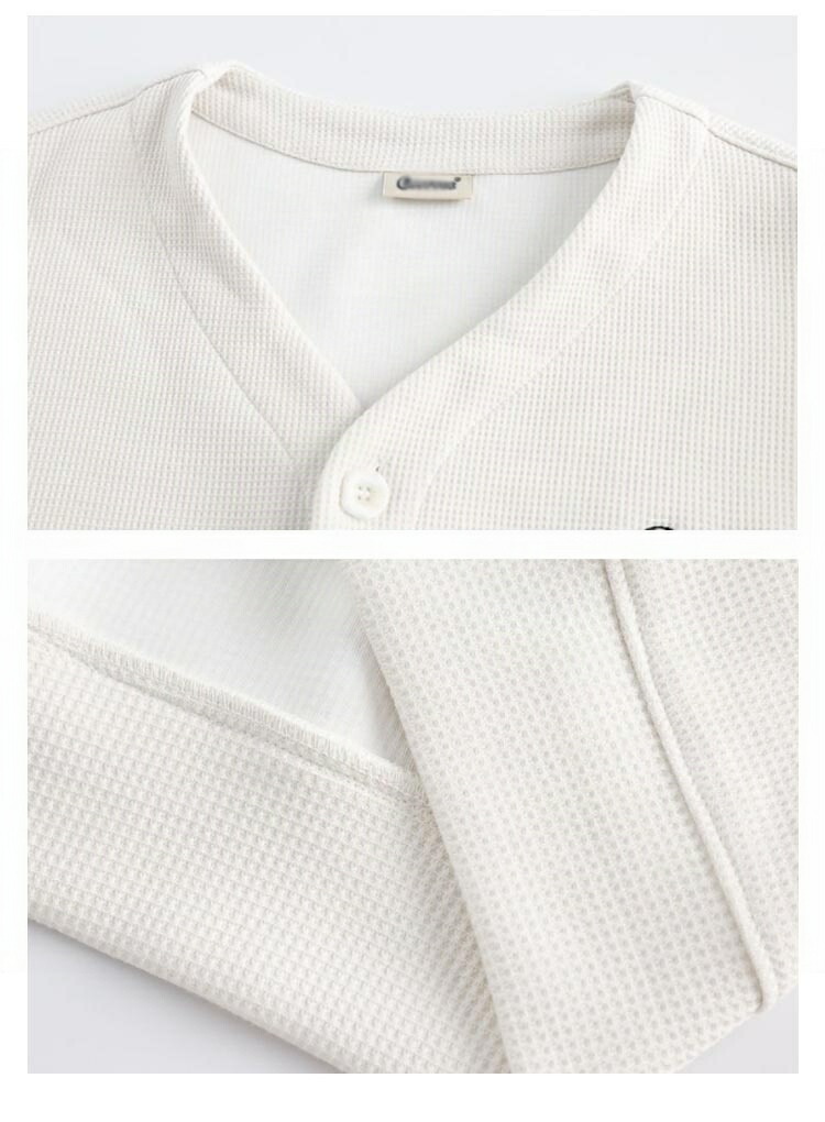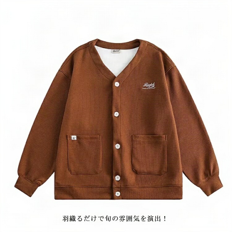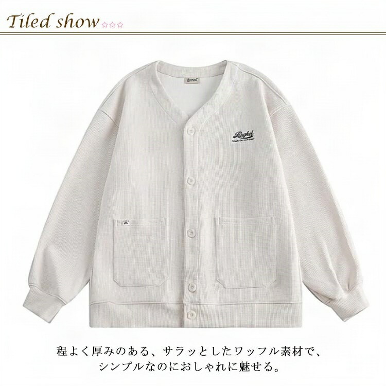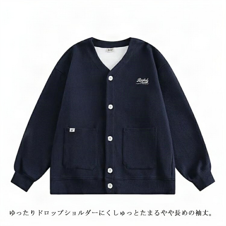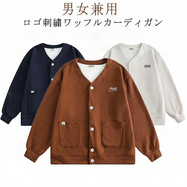 男女兼用 ロゴ刺繍ワッフルカーディガン