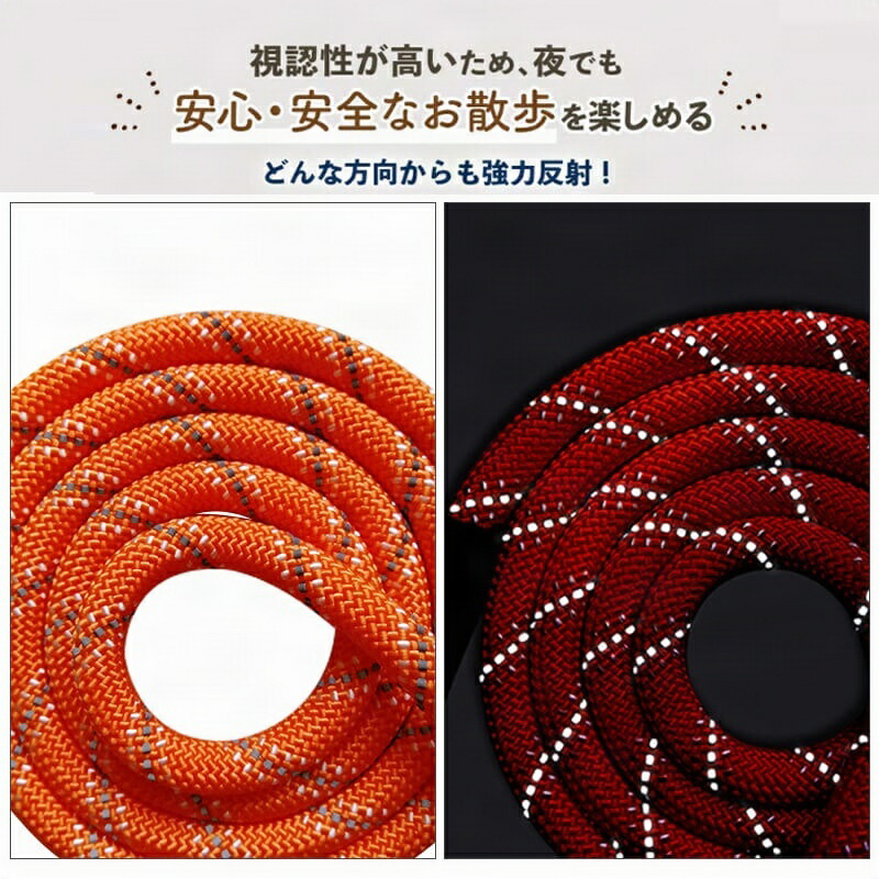 丸ロープ ロングリード 光る 大型犬 犬用品 首輪 胴輪 リード リード 新作 2m 3m 5m 10m 15m 20m ブラック オレンジ