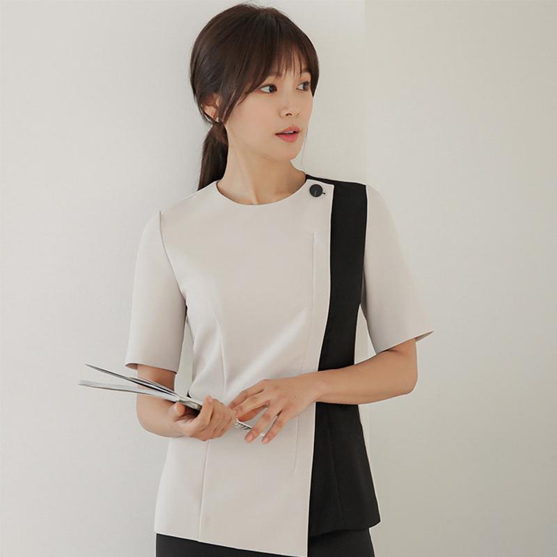 レディース ファッション 業務 ユニフォーム 制服 コスプレ衣装 韓国スタイル スリムフィット タトゥー ネイリスト 技術者 美容室 歯科 半袖 スーツ
