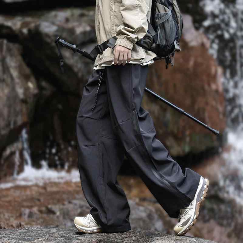 メンズ 服 シンプル ファッション オシャレ 大人 かっこいい 大きいサイズ ストリート 紳士服 アメリカン 機能的 サイド ジッパー ゆったり ストレート レッグ ハイキング 登山 パン アウトドア