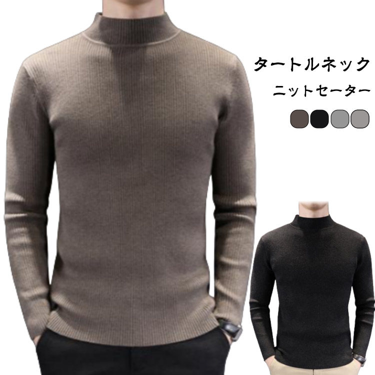 タートルネック ニットセーター メンズ 細身ニット ニット トップス ハイネック タートル