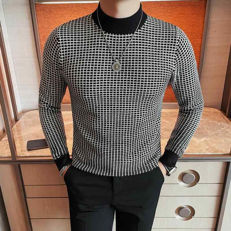 春 コーデ メンズ 服 シンプル ファッション オシャレ 大人 かっこいい 大きいサイズ ストリート 紳士服 カラー ブロック ハーフ タートルネック チェック柄 セーター インナー ニット シ 長袖