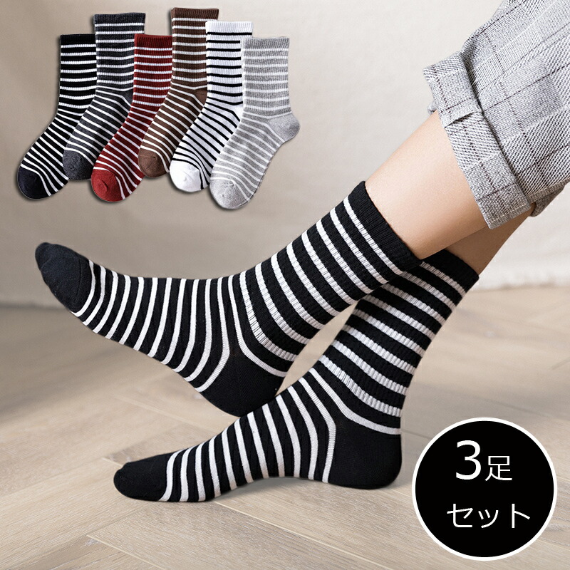 レディース メンズ コットン ボーダー ライン くしゅくしゅ ルーズソックス ソックス カジュアル靴下 綿 ゆるふわ スニーカーソックス クルー丈 伸縮性 おしゃれ 冷えとり シンプル カ 冷え性対策
